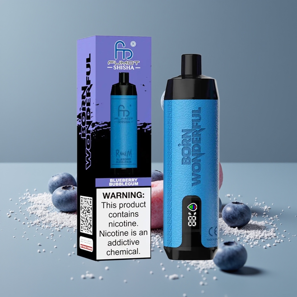 RandM Fumot Shisha 10000 نفخة نكهة التوت البري وعلكة فقاعية مع مؤشر LED وبطارية 850 مللي أمبير