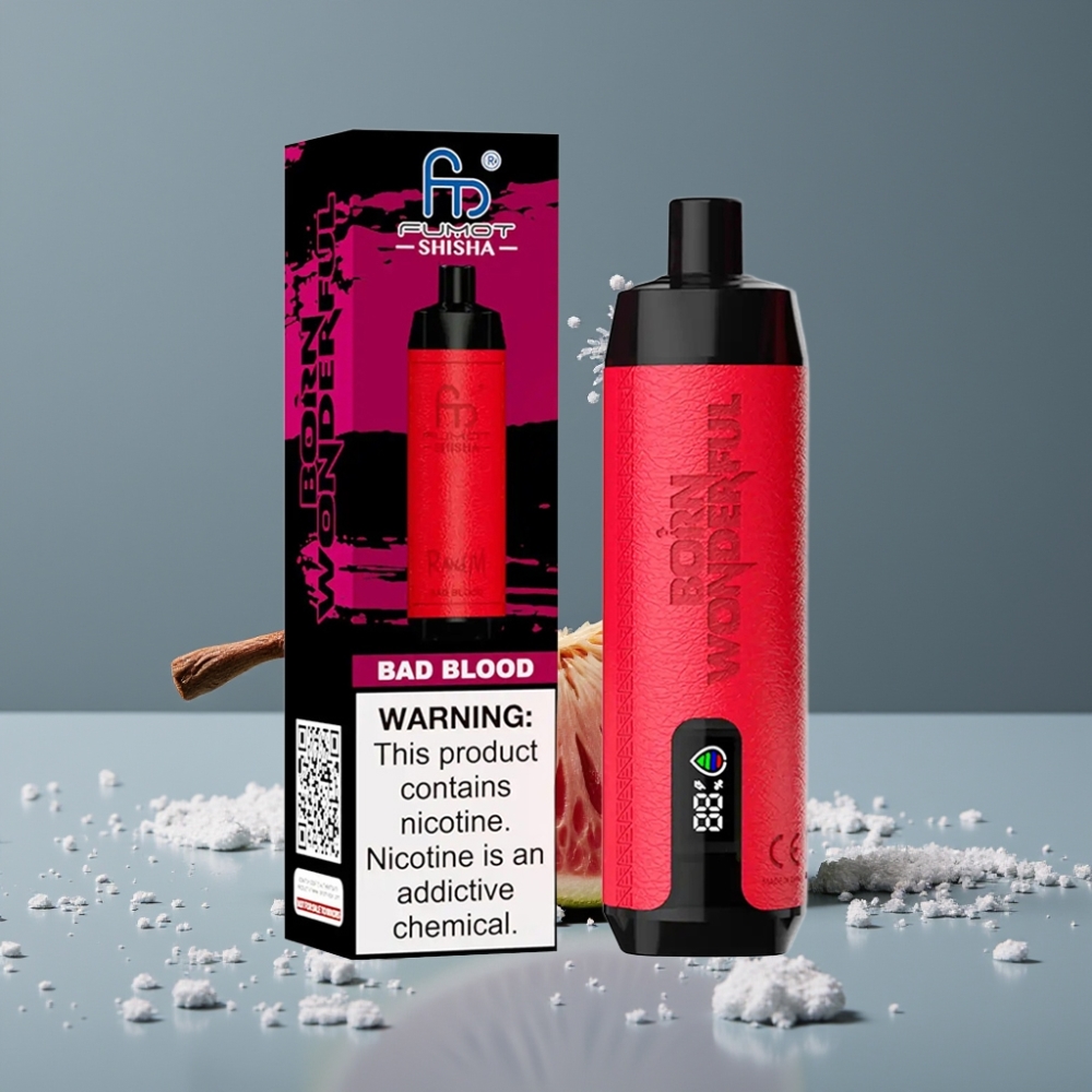 RandM Fumot Shisha 10000 نفخة نكهة الدم الفاسد مع مؤشر LED وبطارية 850 مللي أمبير