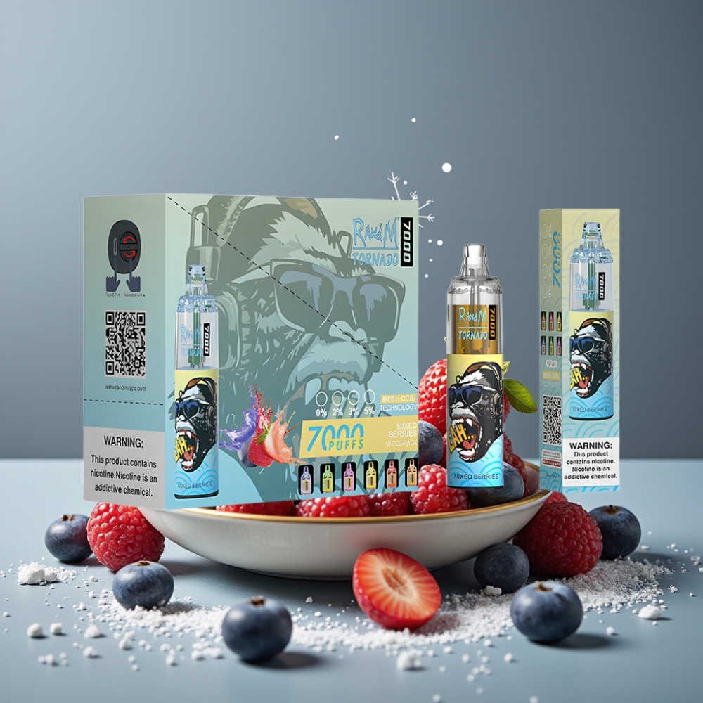 RandM Fumot Tornado 7000 بشريط ألوان RGB ونكهة التوت المختلط