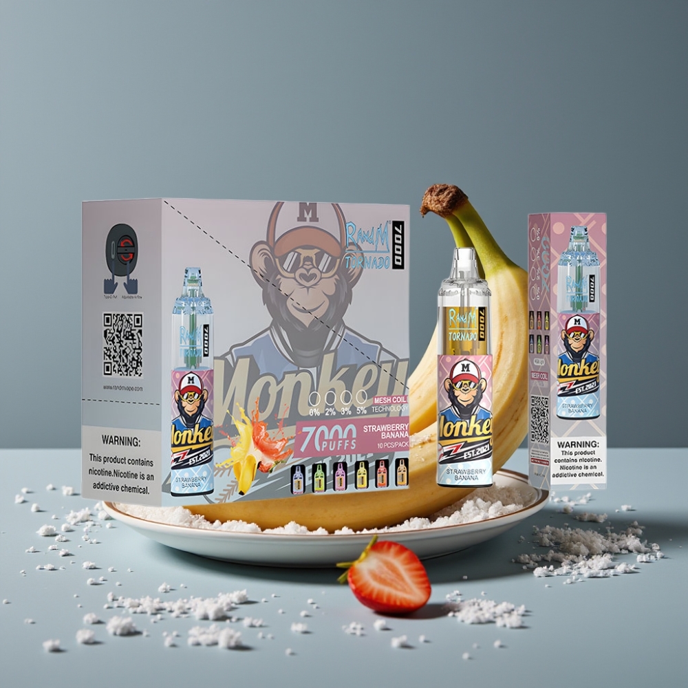 RandM Fumot Tornado 7000 فواكه الفراولة والموز مع ضوء RGB وبطارية 850 MAH