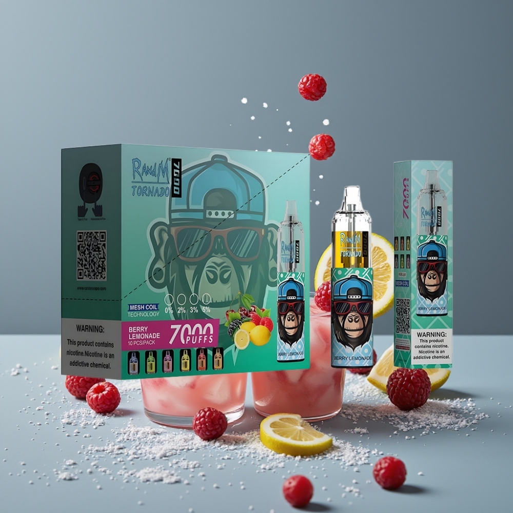 RandM Fumot Tornado 7000 نَفَثات بنكهة التوت والليموناضة مع بطارية 850 ميلي أمبير وشاشة RGB