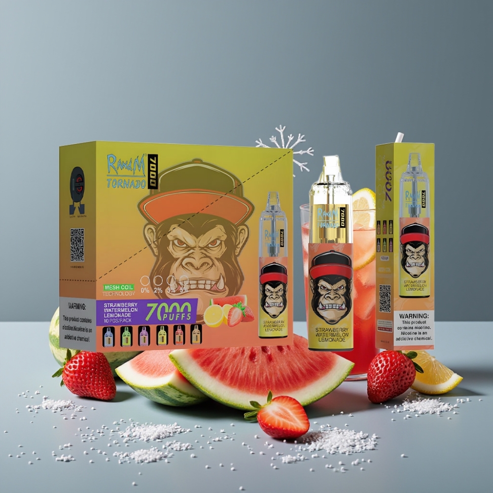 RandM Fumot Tornado 7000 نَفَثات بنكهة فراولة بطيخ ليموناضة مع RGB وشبكة