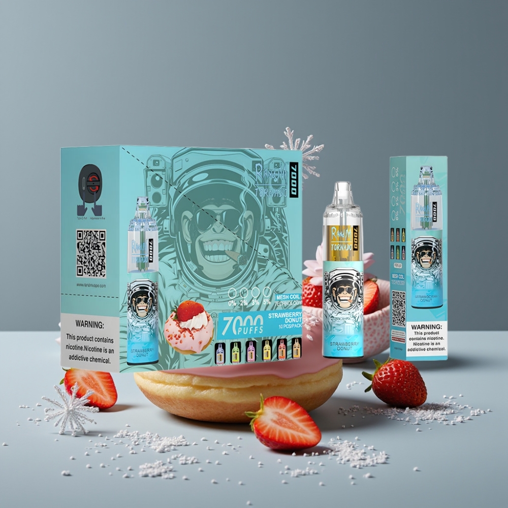 RandM Fumot Tornado 7000 Puffs هواء قابل للتعديل دونات فراولة