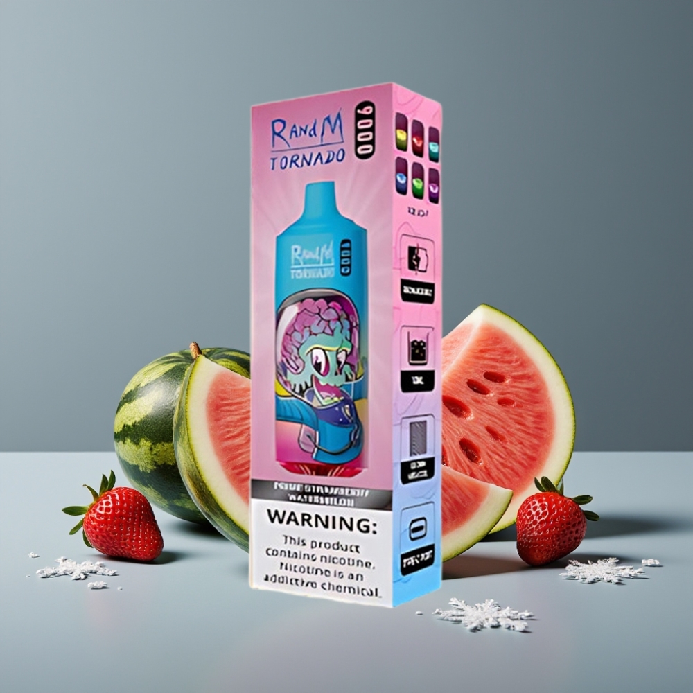 RandM Tornado 9000 Puffs بشاشة RGB وطعم فراولة بطيخ مميز