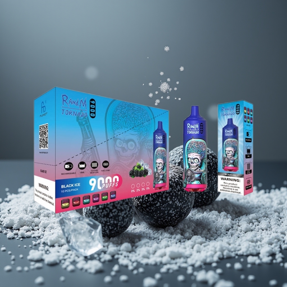 RandM Tornado 9000 Puffs شاشة RGB أنيق نكهة الجليد الأسود